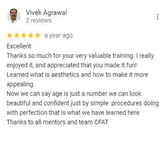 Center for Facial Aesthetic Training (CFAT) brings you carefully curated programmes in aesthetic medicine and cosmetology, designed by renowned mentors and aesthetic practitioners with the aim of educating and empowering its students so as to enable them to add aesthetic medicine to their routine practice.